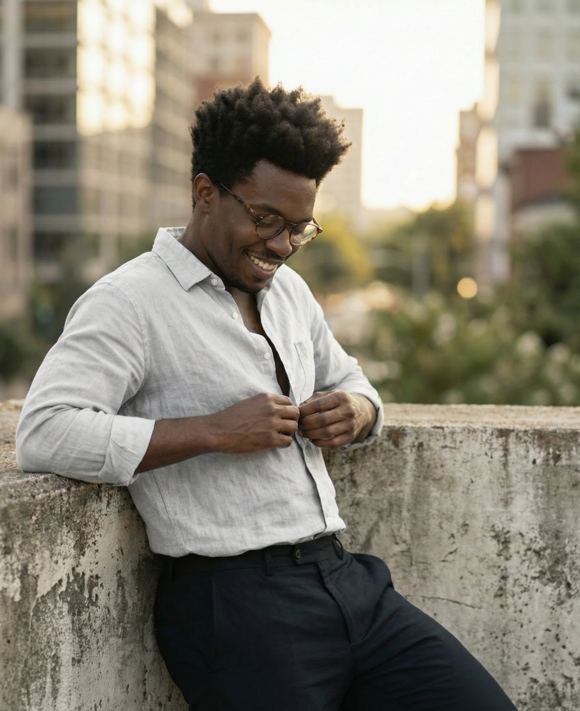 A Camisa Social Eleganza Vitti foi desenhada para o homem moderno que não aceita escolher entre estar elegante ou estar confortável. Desenvolvemos uma peça que respeita a anatomia masculina, valorizando a silhueta com um corte preciso e contemporâneo.